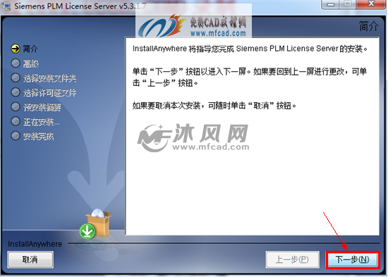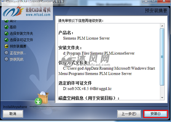 [size=0.7]单击许可证文件即Install License Server 选项,出现安装准备对话框,如图: