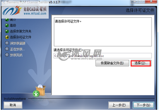 [size=0.7]下面接着就是要指定许可证文件了,点击“选择”命令,如图: