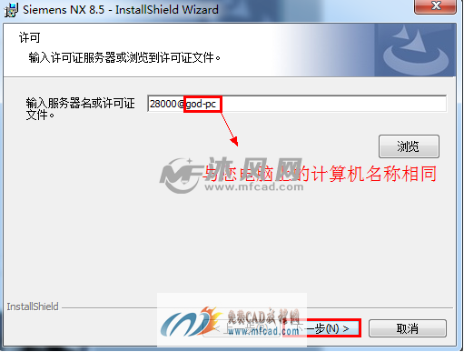 [size=0.7]然后将计算机名复制、替换到上步骤中的“www.mfcad.com”中,替换效果后如图: