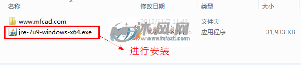 [size=0.7]首先打开 java_ WIN7_X64虚拟机文件夹,然后安装 jre-7u9-windows-64 文件,双击进行安装,如图: