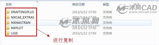 [size=0.7]在我们解压的破解文件NX_8.5.0_Win64_crack_SSQ中找到复制到主程序中的DRAFTINGPLUS、NXCAE_EXTRAS、NXNASTRAN、NXPLOT、UGII这5个文件夹,并点击复制