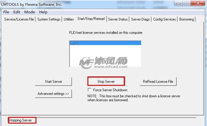 然后点击 Stop Server选项,反应一段时间以后,最后一行会出现Stoping Server,如果出现的不是这个停止服务器,我们可以把 Force Server Shutdown前面打上对勾,强制关闭服务器,如图: