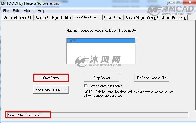 然后点击 Start/Stop/Reread选项,会出现我们配置的一个许可证服务器,如图: