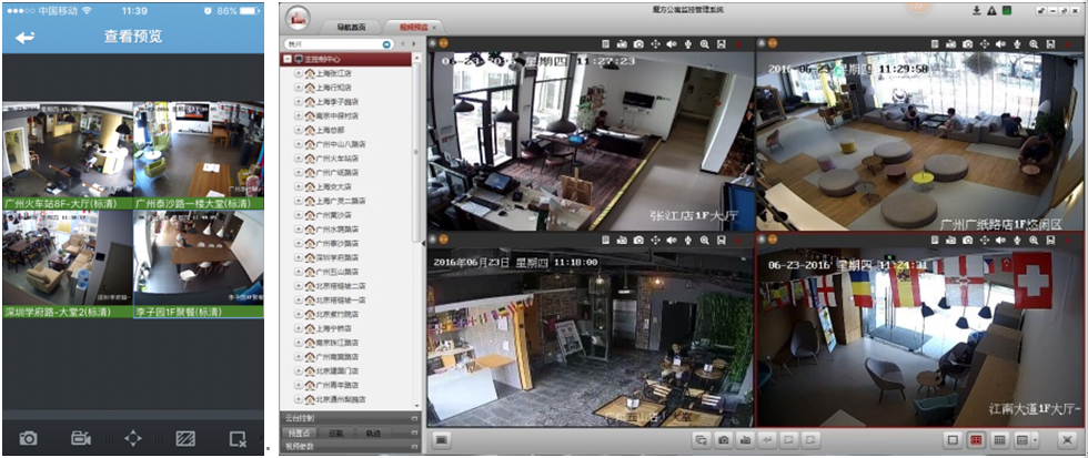 房屋租赁的安全性是目前租房市场一个极受房客关注的问题,入住人员的流动性和不确定性等多种因素,促使魔方公寓的管理者需要实现以下几点功能: 1、对其全国门店的联网监控,加强中心管理; 2、移动端与PC端的远程巡店,加强巡店效率; 3、通过门禁设备,实现人员进出一人一卡的管控。 解决方案 通过海康威视的门禁系统,对入住人员进行登记并发放卡片,通过人员卡片对进出人员进行严格管控,做到一人一卡,进出人员记录可查。如果发生非法闯入等情况,门禁联动报警,监控中心报警弹窗,实现可视化的报警管理。 遍布全国的门店采用高清网络半球摄像机,配合本地NVR存储,通过Ehome协议将前端设备接入统一平台,中心部署iVMS8720平台,通过6块大屏,对各个门店的安全及运营情况,进行实时远程的视频预览、录像查询、下载等。 同时,通过8720远程巡店这一功能随着移动客户端的普及应运而生。中心平台通过MAG服务器,将视频转码为符合移动客户端3GP标准视频码流的视频。同时,凭借MAG服务器,手机等移动终端通过3G/4G网络、WIFI等方式接入系统。